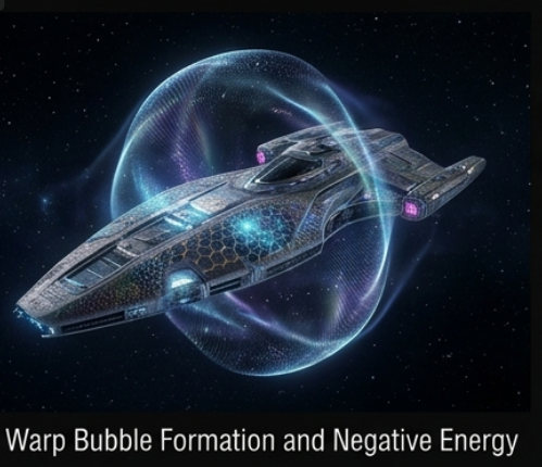Exploration of spacetime curvature models (e.g., Alcubierre-like metrics), energy density constraints, and controllable field geometries using simulation-first approaches.
